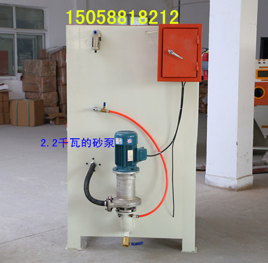 本液體噴砂機配備北京長空2.2KW的聚胺脂砂泵,砂泵功率380V 2.2KW 流量1.5立方
